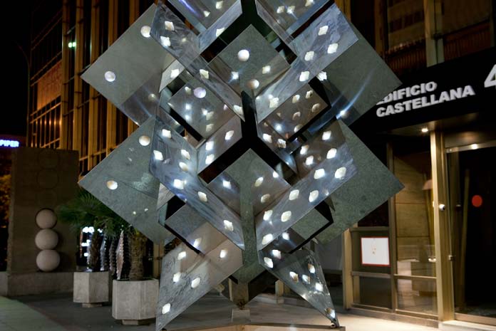 Convencidos de que los monumentos de Madrid están demasiado iluminados, rodearon la Puerta de Alcalá de 100 gafas de sol de gran tamaño y distintos colores, para que viandantes y conductores pudiesen admirarla sin deslumbrarse por los potentes focos de luz que se proyectan sobre la superficie del emblemático monumento. ‘Gafas para iluminación monumental’.